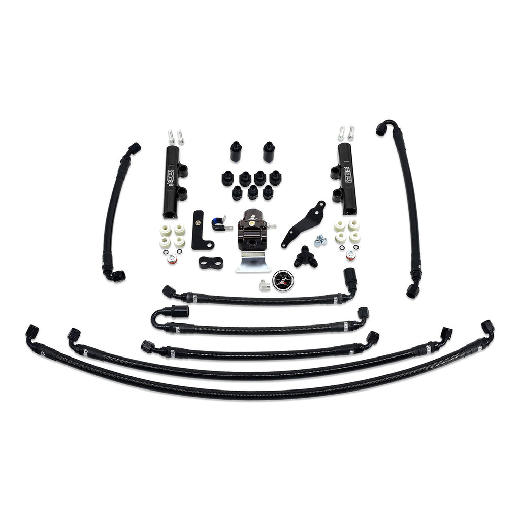 The IAG Performance PTFE Engine Bay Flex Fuel Kit for the 2008-14 Subaru WRX combines our popular PTFE Flex Fuel Line kit with our Black IAG Top Feed Fuel Rails and the Aeromotive Regulator for a complete installation. Just add your choice of top feed fuel injectors, Cobb Flex Fuel Sensor, and IAG TGV housings to round out this kit and complete your installation. All lines feature Fragola 6000 series PTFE hose and are pre-assembled and ready for installation. The lines are stainless reinforced and feature black nylon covering to prevent scratching. With a 2000 psi working pressure and 8000 psi burst pressure, these lines will easily handle the demands of your fuel system. PTFE is a coating that resists heat and corrosion, making it ideal for all automotive fluid types. These hoses will not allow the permeation of fuel vapors and will eliminate the chances of fuel smell that other lines can exhibit. The hoses feature custom fittings specifically designed to work with the COBB Flex Fuel Sensor and are pre-assembled to application-specific lengths for easy installation.
