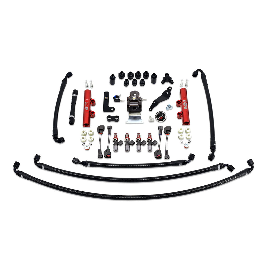 The IAG PTFE Engine Bay Fuel System Kit for the 2008-14 Subaru WRX combines our popular PTFE Fuel Line kit with Red IAG Top Feed Fuel Rails, Aeromotive Fuel Pressure Regulator and your 1050cc Injector Dynamics fuel injectors. Just add your choice of IAG TGV housings to round out this kit and complete your installation. All lines feature Fragola 6000 series PTFE hose and are pre-assembled and ready for installation. The lines are stainless reinforced and feature black nylon covering to prevent scratching. With a 2000 psi working pressure and 8000 psi burst pressure, these lines will easily handle the demands of your fuel system. PTFE is a coating that resists heat and corrosion, making it ideal for all automotive fluid types. These hoses will not allow the permeation of fuel vapors and will eliminate the chances of fuel smell that other lines can exhibit. These hoses are pre-assembled to application-specific lengths for easy installation.