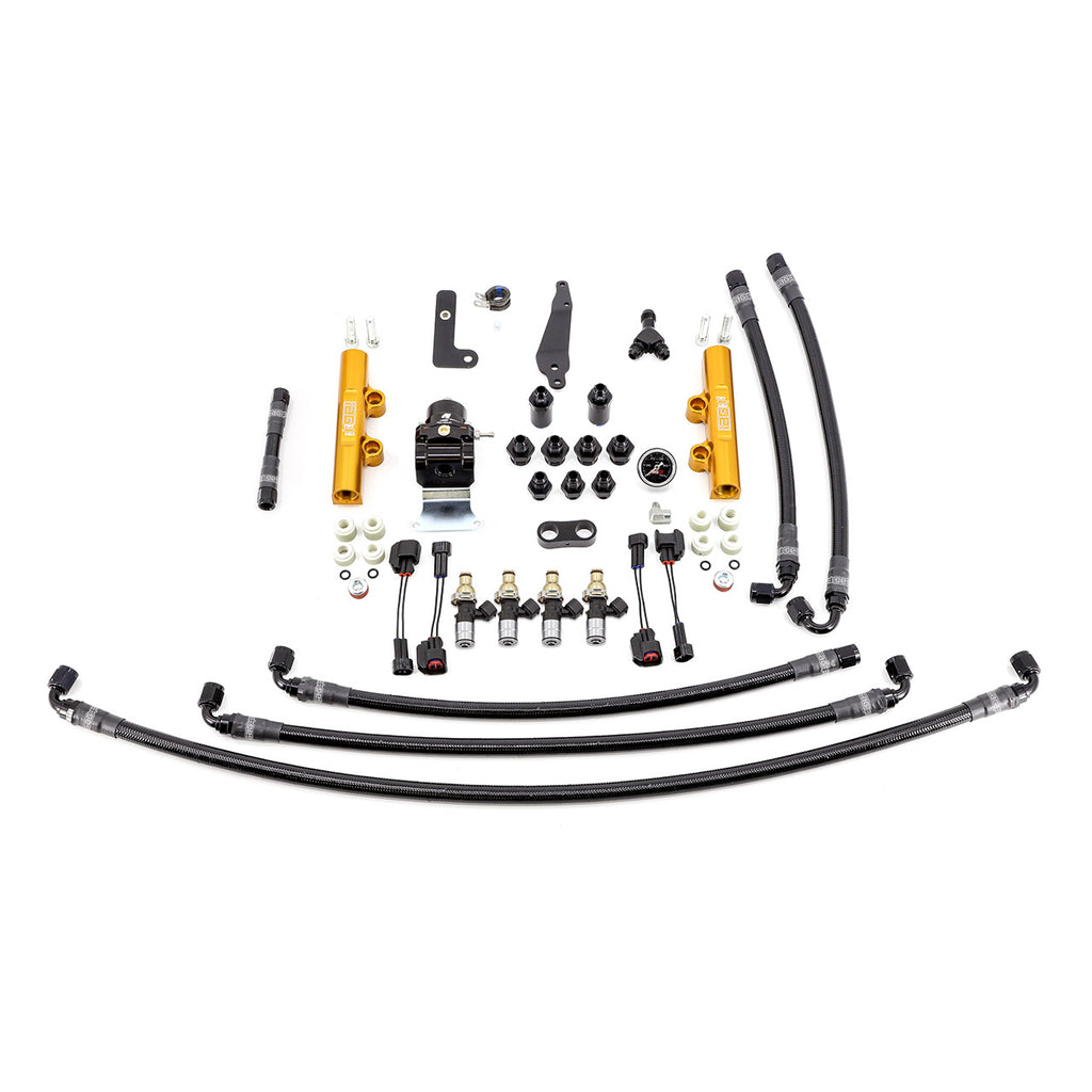 The IAG PTFE Engine Bay Fuel System Kit for the 2008-21 Subaru STI combines our popular PTFE Fuel Line kit with Gold IAG Top Feed Fuel Rails, Aeromotive Fuel Pressure Regulator and 2600cc Injector Dynamics fuel injectors. Just add your choice of IAG TGV housings to round out this kit and complete your installation. All lines feature Fragola 6000 series PTFE hose and are pre-assembled and ready for installation. The lines are stainless reinforced and feature black nylon covering to prevent scratching. With a 2000 psi working pressure and 8000 psi burst pressure, these lines will easily handle the demands of your fuel system. PTFE is a coating that resists heat and corrosion, making it ideal for all automotive fluid types. These hoses will not allow the permeation of fuel vapors and will eliminate the chances of fuel smell that other lines can exhibit. PTFE is a coating that resists heat and corrosion, making it ideal for all automotive fluid types. PTFE hoses will not allow the permeation of fuel vapors and will eliminate the chances of fuel smell that other lines can exhibit. Pre-assembled to application-specific lengths for easy installation.