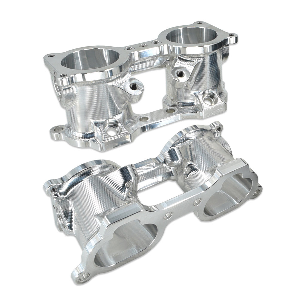 The OEM Subaru intake manifold features “Tumble Generator Housings,” which are designed to “tumble” the airflow on cold starts. Once the cold start process is over, the butterfly valves in the housings remain in the open position and don’t restrict flow much. This means that there are airflow gains to be had, even with the butterfly valves in place. We’ve completely redesigned our popular TGV housings with new port shapes to further improve airflow and allow for the OEM emissions equipment compatibility. We’ve seen gains of 5 WHP over our V2 TGV housings, and 13 WHP over stock housings. The IAG V3 Top Feed TGV Housings are CNC machined in house from 6061 aircraft grade aluminum. Finished in natural silver, or anodized black, the TGV housings look great in the engine bay. Designed to work with all popular aftermarket or stock injectors, the housings can be used for all levels of builds and will provide increased horsepower even in stock vehicles. Our innovative design allows the housings to be used with different upper manifold bolt patterns. The custom injection molded fittings allow for installation of the OEM motors, shaft, and butterfly valves.